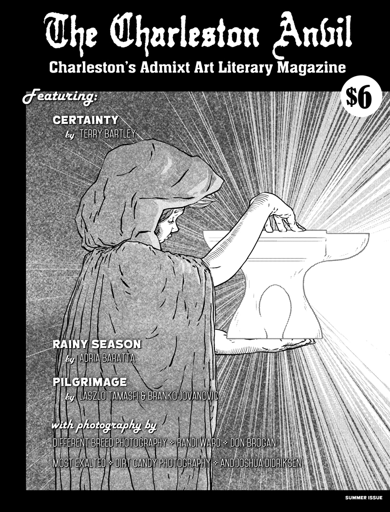 About the magazine- The Charleston Anvil is a voluntary communal art and literary project that relies on an open submissions process for content and is composed entirely of volunteered works. All content within the magazine is creator owned.